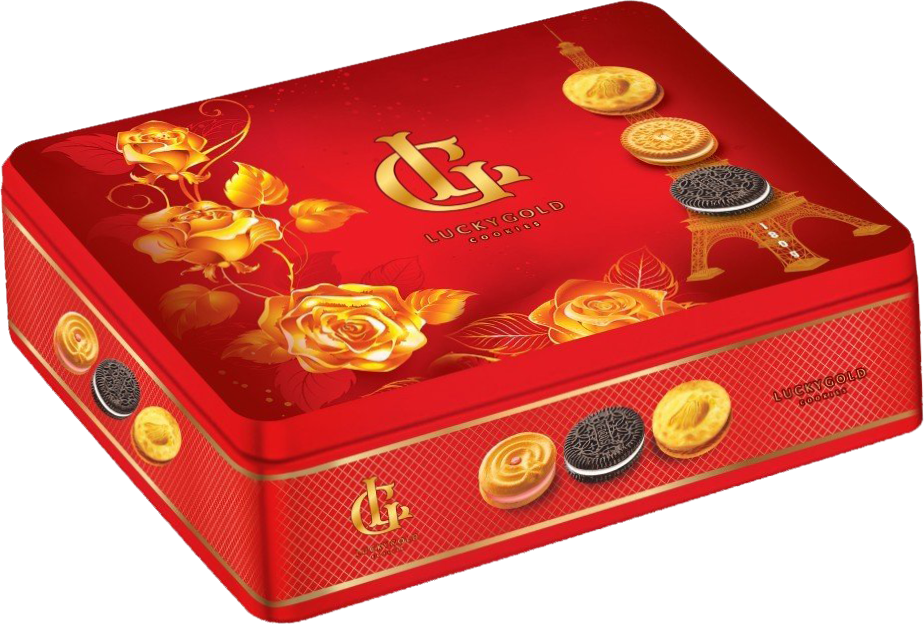 Bánh quy hỗn hợp Lucky Gold – mang đến bộ sưu tập bánh quy đa dạng với nhiều kiểu dáng và hương vị hấp dẫn. Sản phẩm nhập khẩu, sản xuất theo dây chuyền hiện đại, đảm bảo chất lượng giòn thơm, vị ngọt vừa phải, kết hợp bơ sữa béo nhẹ, thơm lừng mỗi lần mở hộp. Thiết kế hộp sang trọng, nắp kín giữ bánh luôn giòn, thích hợp dùng cho gia đình, văn phòng, tiệc trà hoặc làm quà biếu dịp lễ Tết.