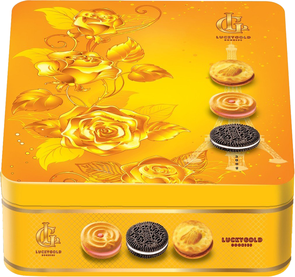 Bánh quy hỗn hợp Lucky Gold – hộp 320g mang đến bộ sưu tập bánh quy đa dạng với nhiều kiểu dáng và hương vị hấp dẫn. Sản phẩm nhập khẩu, sản xuất theo dây chuyền hiện đại, đảm bảo chất lượng giòn thơm, vị ngọt vừa phải, kết hợp bơ sữa béo nhẹ, thơm lừng mỗi lần mở hộp. Thiết kế hộp sang trọng, nắp kín giữ bánh luôn giòn, thích hợp dùng cho gia đình, văn phòng, tiệc trà hoặc làm quà biếu dịp lễ Tết.
