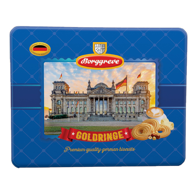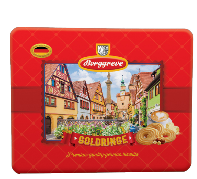 Bánh quy Borggreve là sản phẩm bánh quy cao cấp nhập khẩu từ Đức, nổi tiếng với hương vị truyền thống châu Âu thơm bơ béo nhẹ và vị ngọt thanh dịu dàng. Bánh có kết cấu giòn xốp, hương thơm tự nhiên từ bơ sữa và ngũ cốc, mang lại cảm giác thưởng thức tinh tế, phù hợp với cả người lớn và trẻ em.